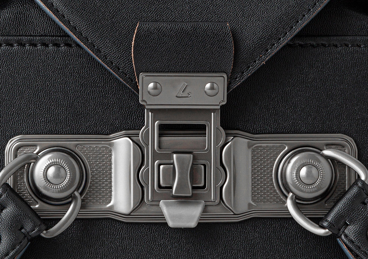 軽量化を目的としたハイブリッド(併用)仕様。メインに牛革を、側面と底面に軽くて丈夫な人工皮革を使っています。