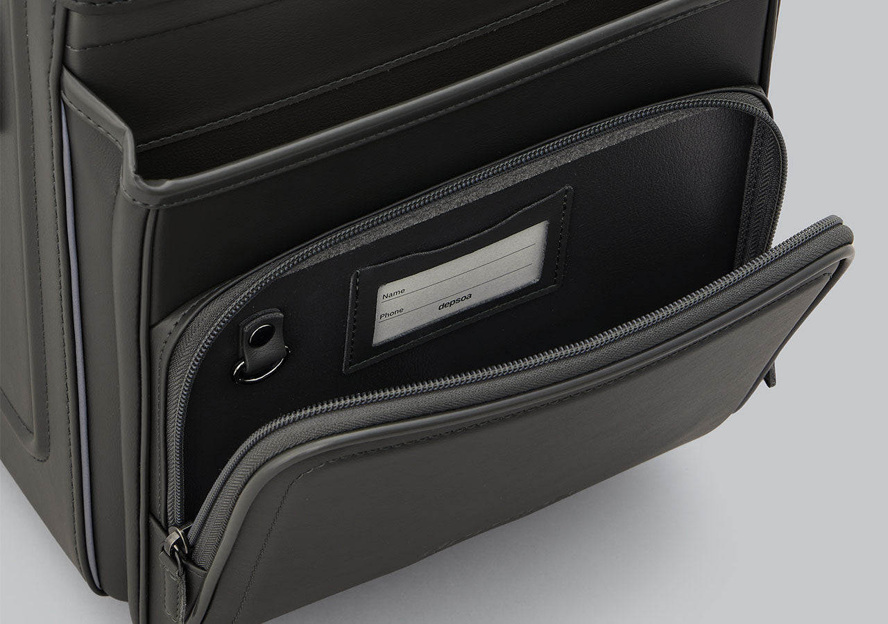 出し入れしやすく、容量もたっぷり。ハンカチやティッシュなど小物類を整理して収納可能。内側には名前カードとキーフックを装備し、防犯にも配慮。