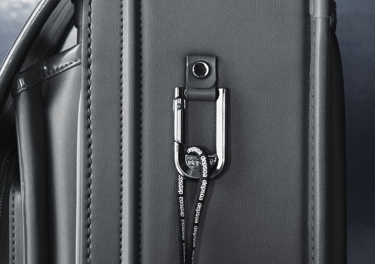 ランドセルの両サイドには、それぞれカラビナを装備。巾着などをかけられ、かけ外しも簡単。