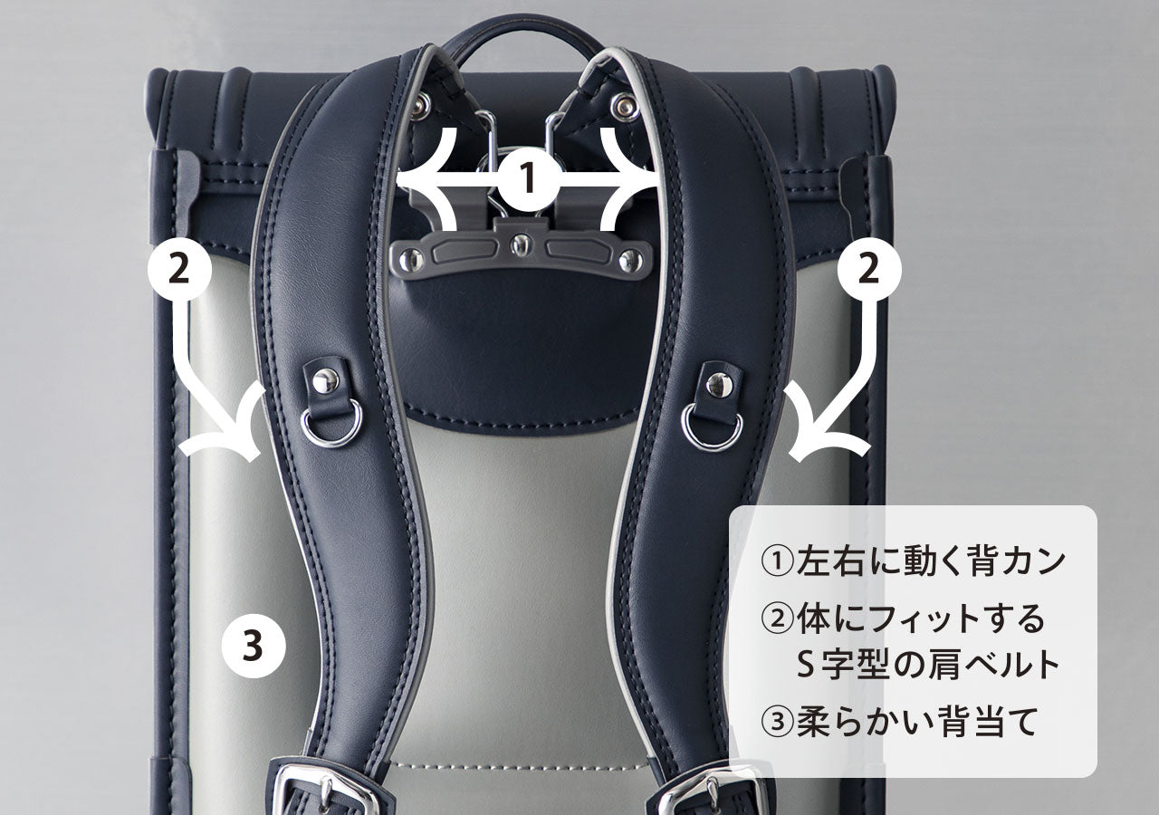 重心を体に近づける構造を研究。毎日背負っても、軽くて疲れにくい設計に。柔らかい背当ては、快適な背負い心地をキープ。