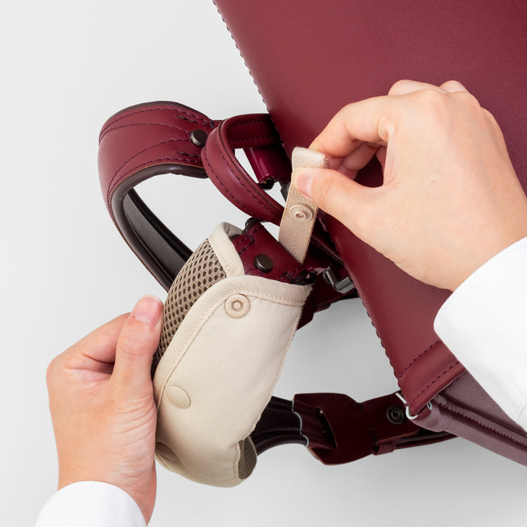 クッションの役割を担ってくれる、土屋鞄オリジナルの肩パッド。ランドセルの肩ベルトには十分なクッションを搭載していますが、肩パッドをプラスすることで、フィット感が増し負担を軽減。体の小さい低学年のお子さまや通学時間が長い場合、教材が多い日などでも活躍します。