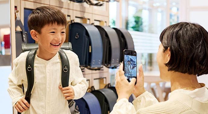 カタログのテーマに合わせたフォトスポットをご用意しています。ランドセル選びの思い出づくりにご活用ください。