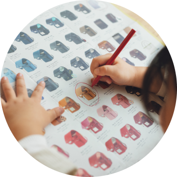 大きな紙面ですべてのモデルを確認ができ、お子さまと一緒に候補を選ぶのにもぴったりです。