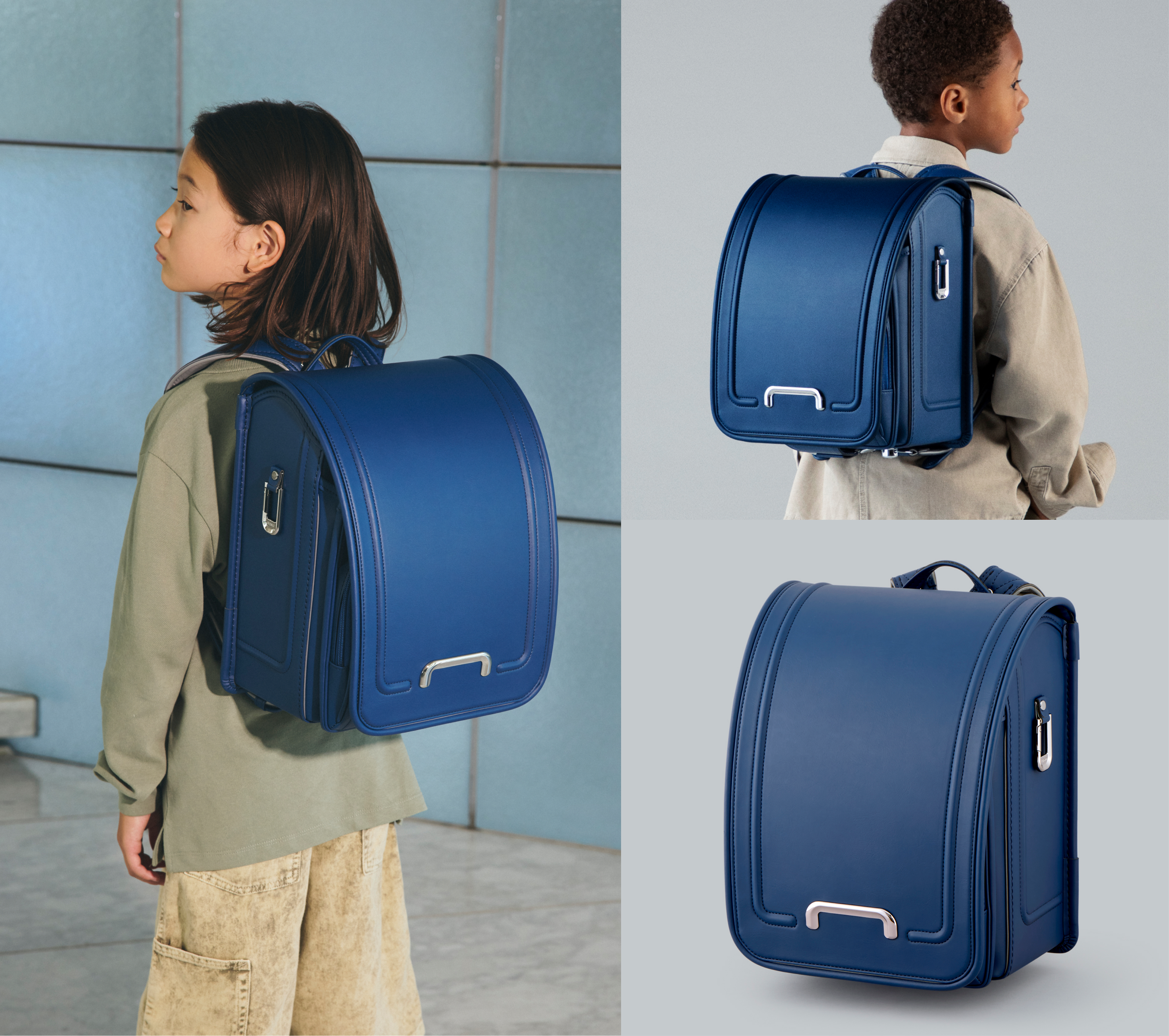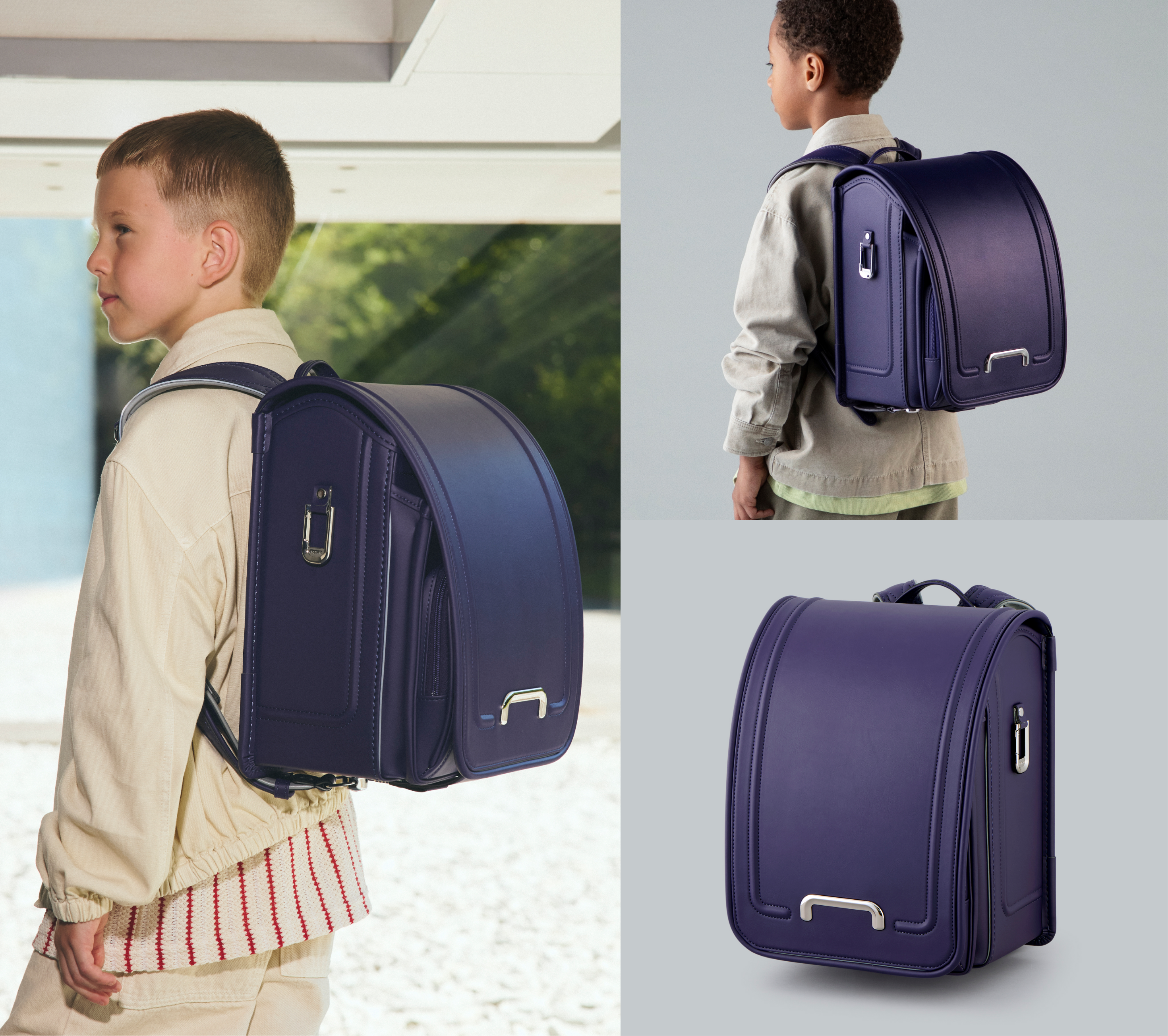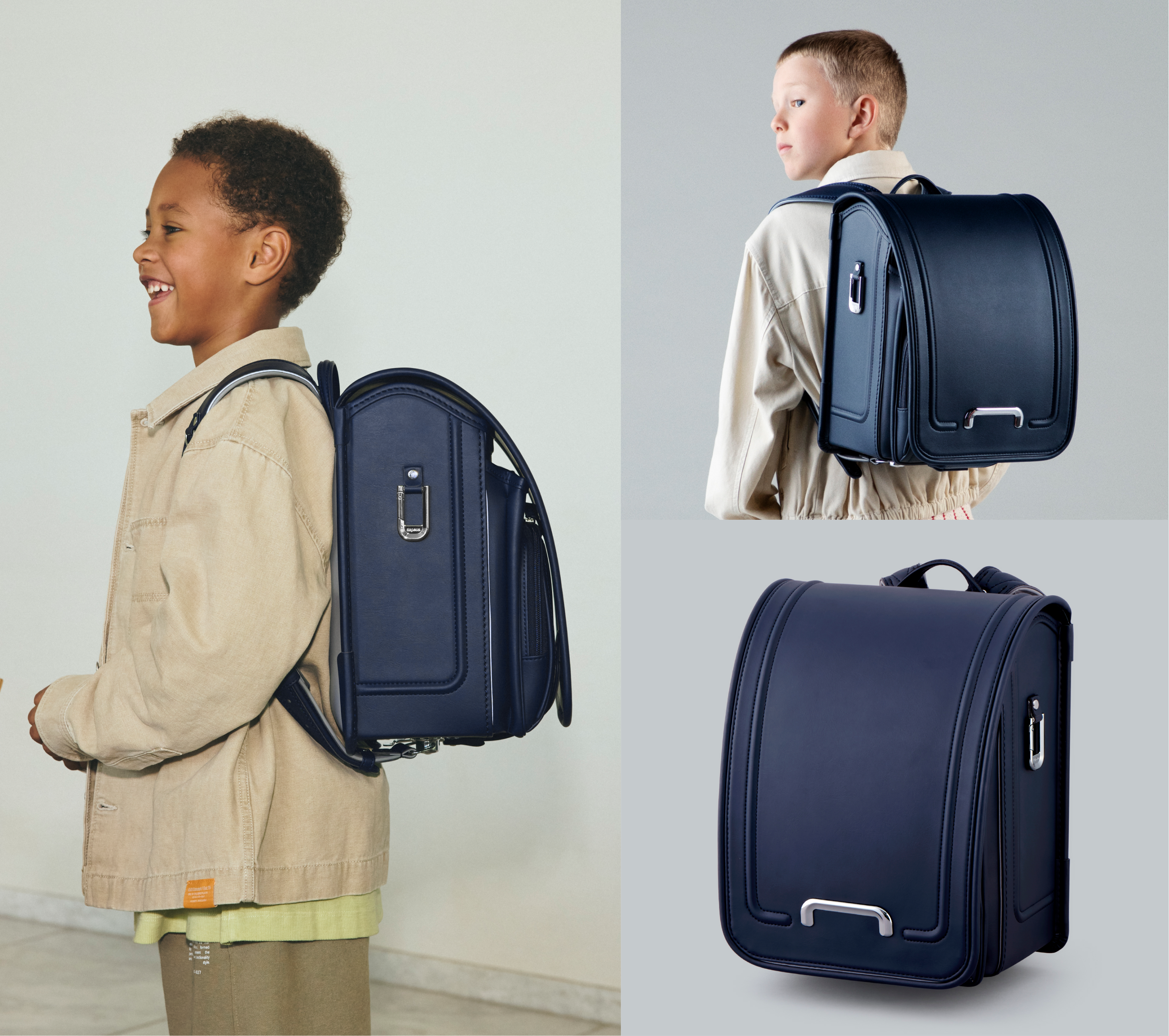 ランドセルを背負う姿を想像しやすい着用写真をはじめ、機能のこだわりやアフターサポート、販売情報まで幅広く掲載。