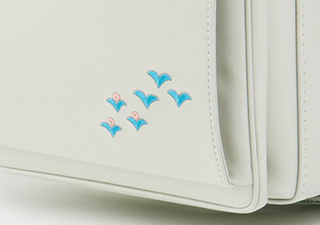 土屋鞄では初めての刺繍入りのランドセル。絵柄のモチーフをあしらい、愛らしいワンポイントに。