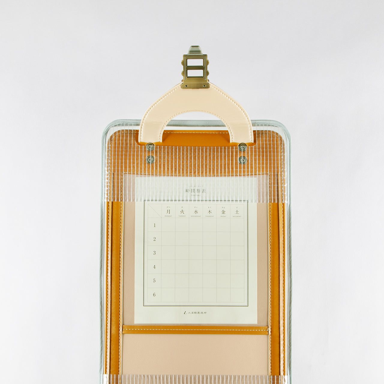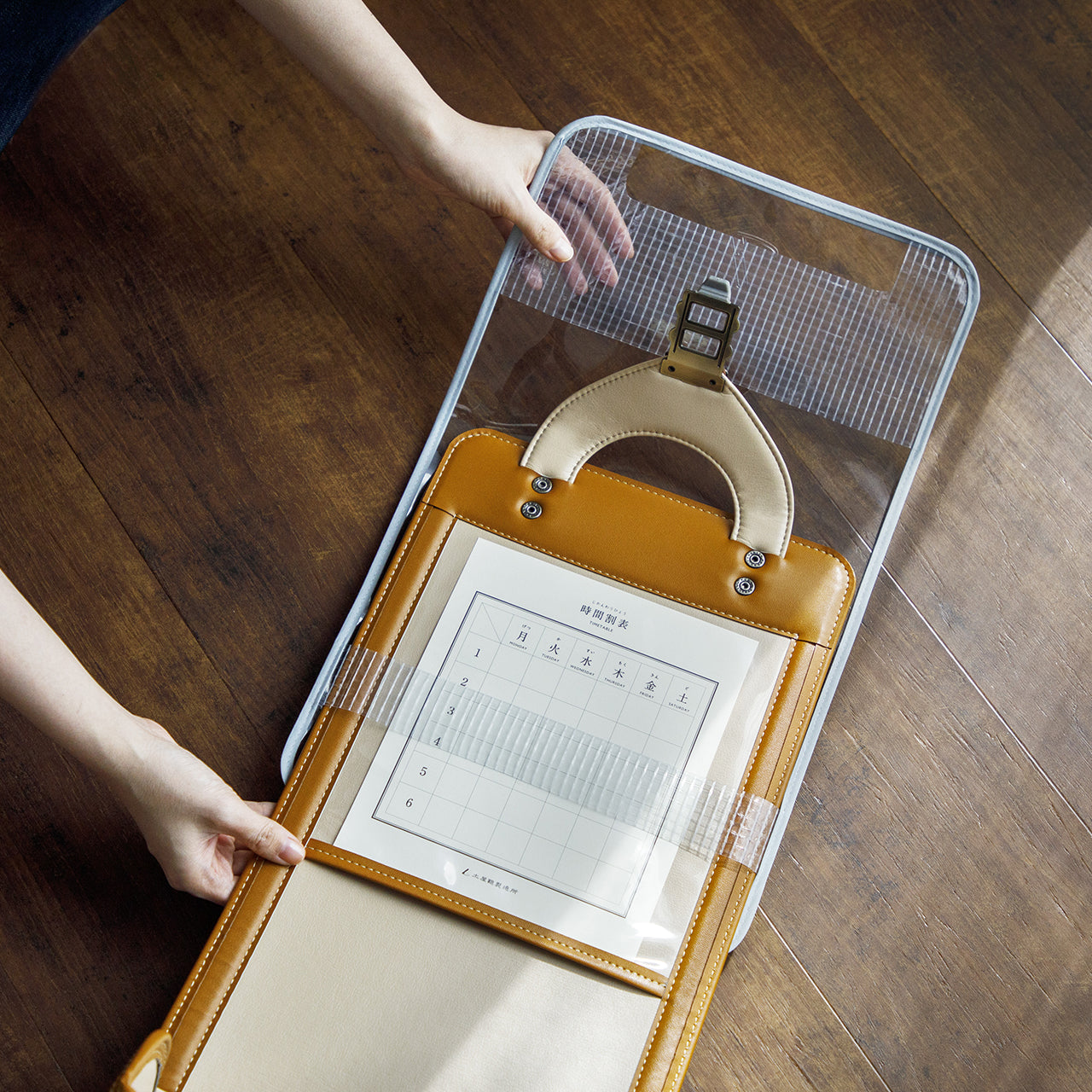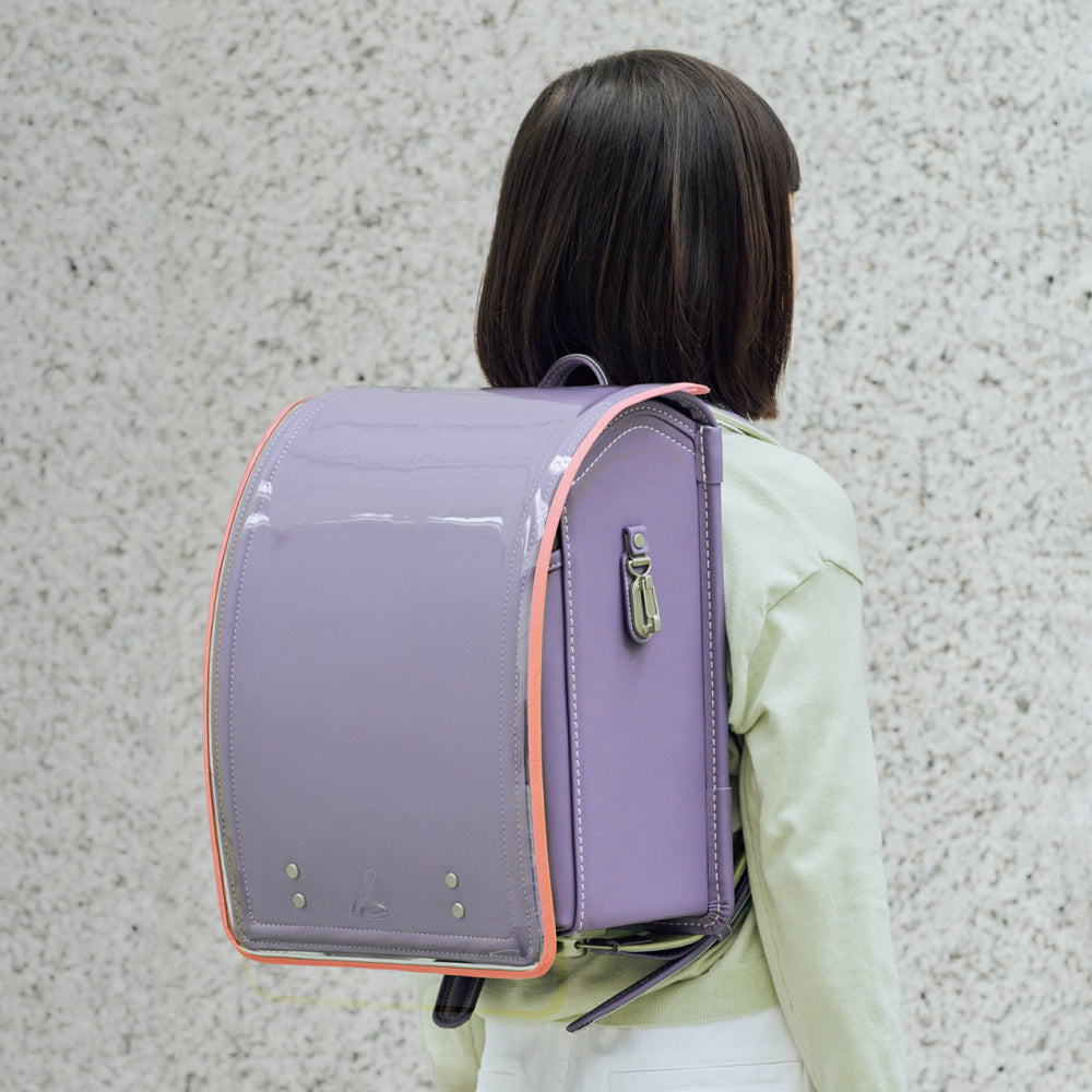 カバーは2タイプ。ランドセルの色を生かす透明のカバーは、全8色の縁巻テープが差し色に。ワンポイントとして型押しのロゴマークが入っています。