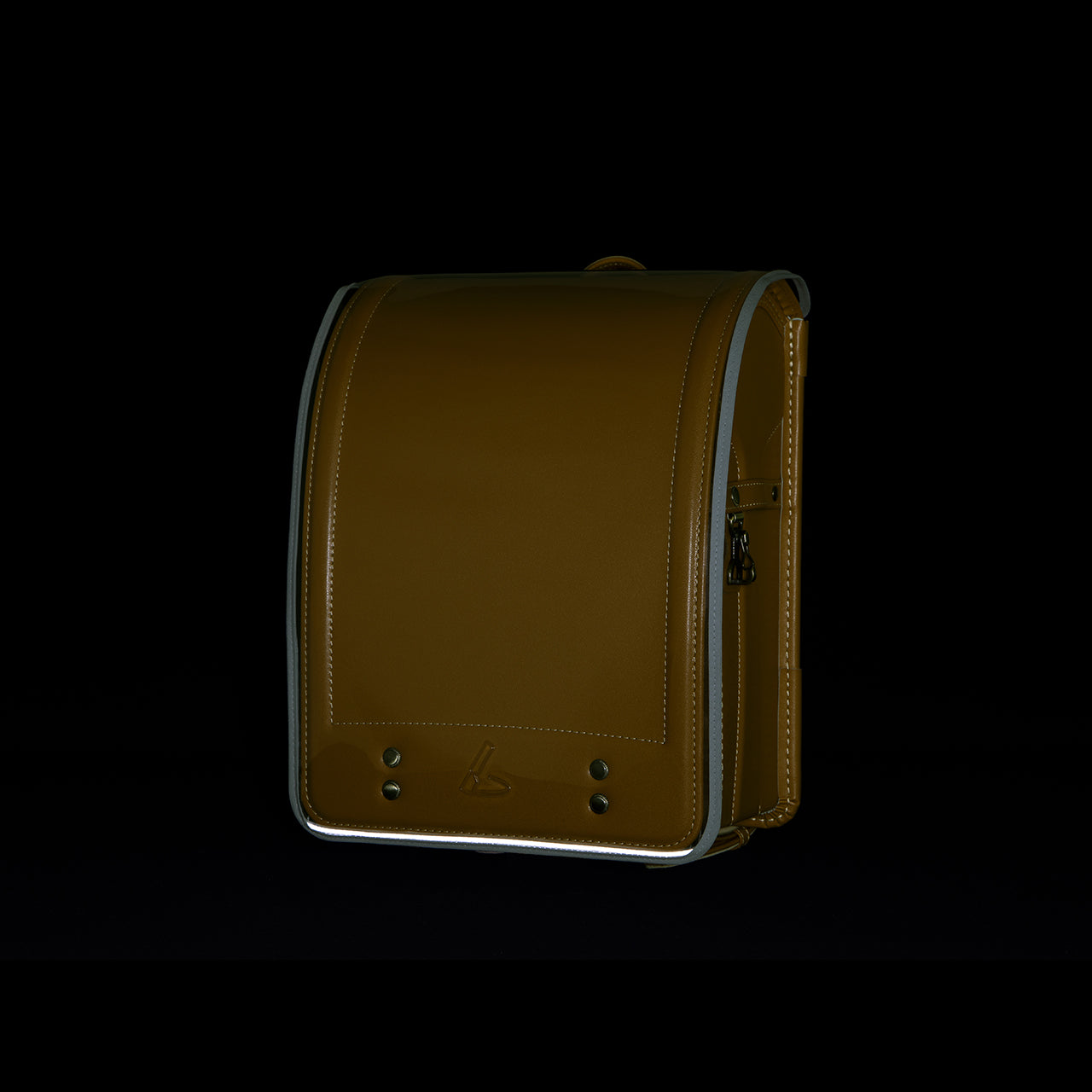 暗いところで、運転手に存在を知らせる反射材。透明のカバーでは、ランドセルのデザインとのバランスを図り、さりげなく一辺に入れました。
